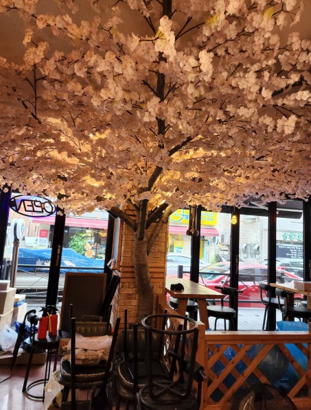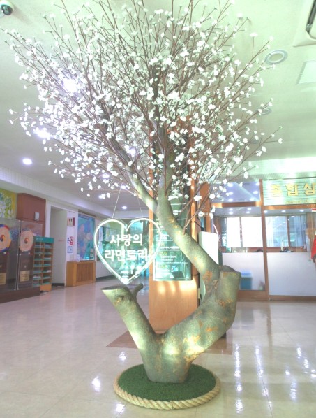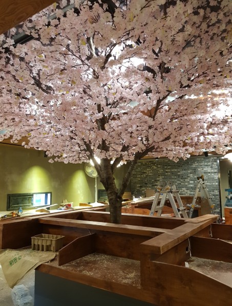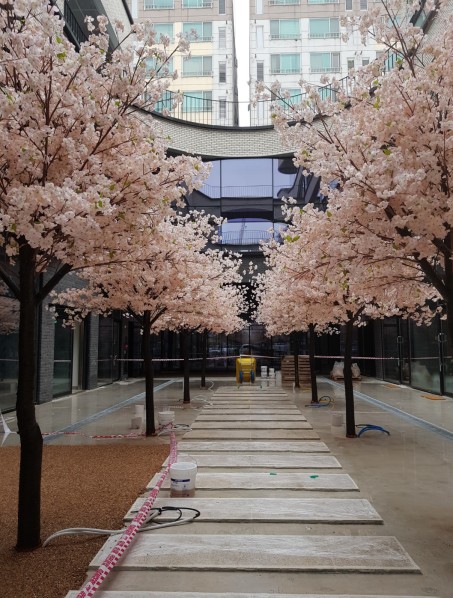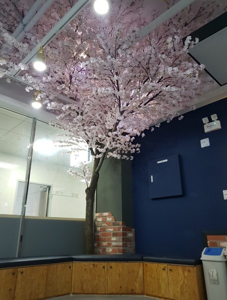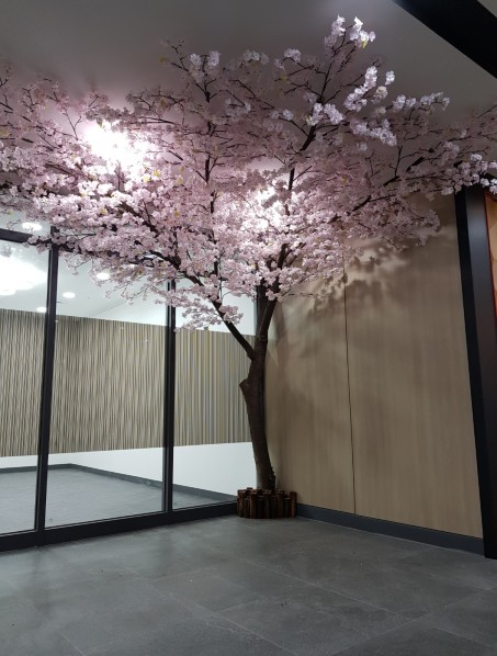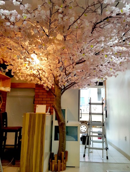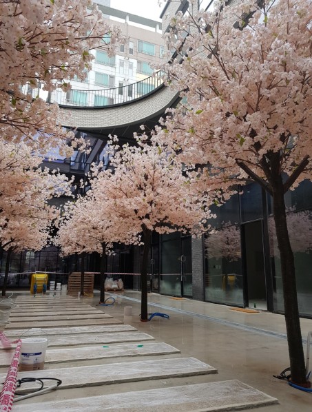 기존기둥을 대형 벚나무로 연출